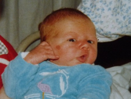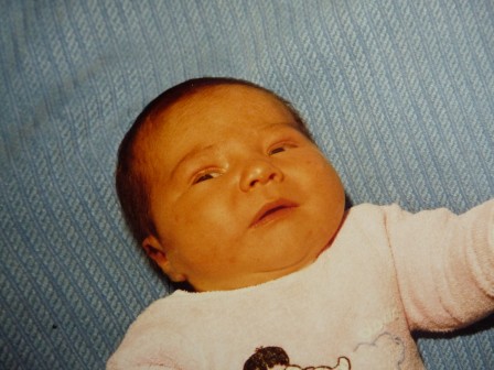 - Ma maman : elle est née avec 8 jours de retard. Ceci explique peut-être ses joues joufflues et ses 4.050 Kg. Elle avait également les oreilles pliées faute de place mais heureusement, elles ont bien repris leur forme.